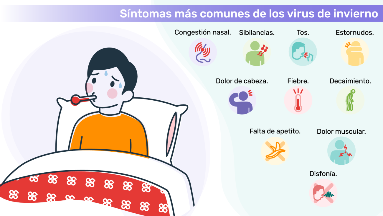 Para estar atentos a estos procesos, algunos de los síntomas más comunes de los virus de invierno son: